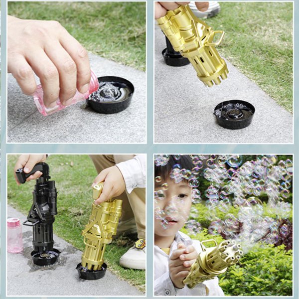 Много лесна за използване, просто поставете батериите, напълнете течност за балончета, натиснете спусъка и се забавлявайте да стреляте с мехурчета