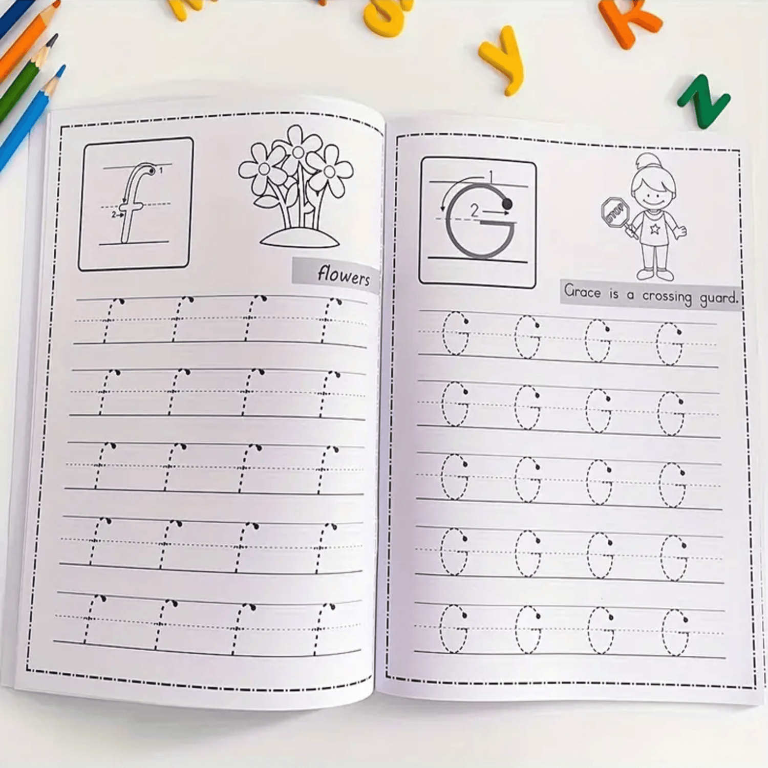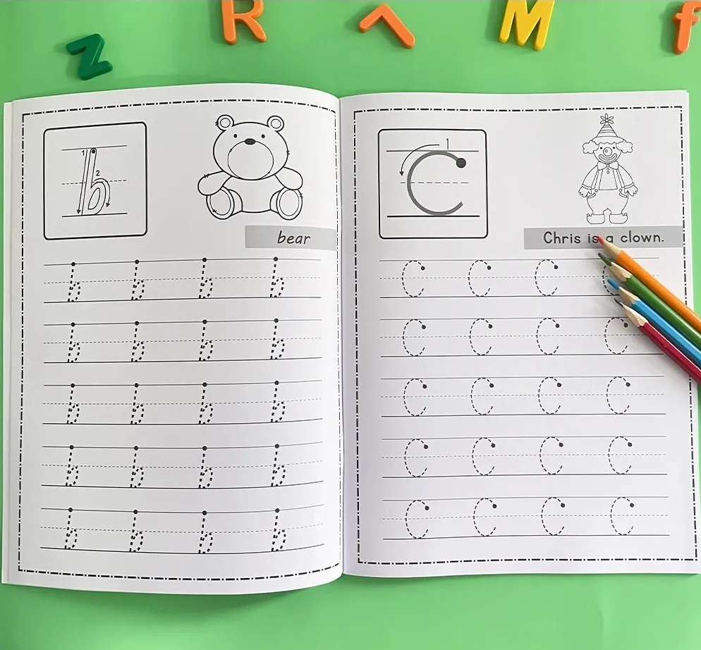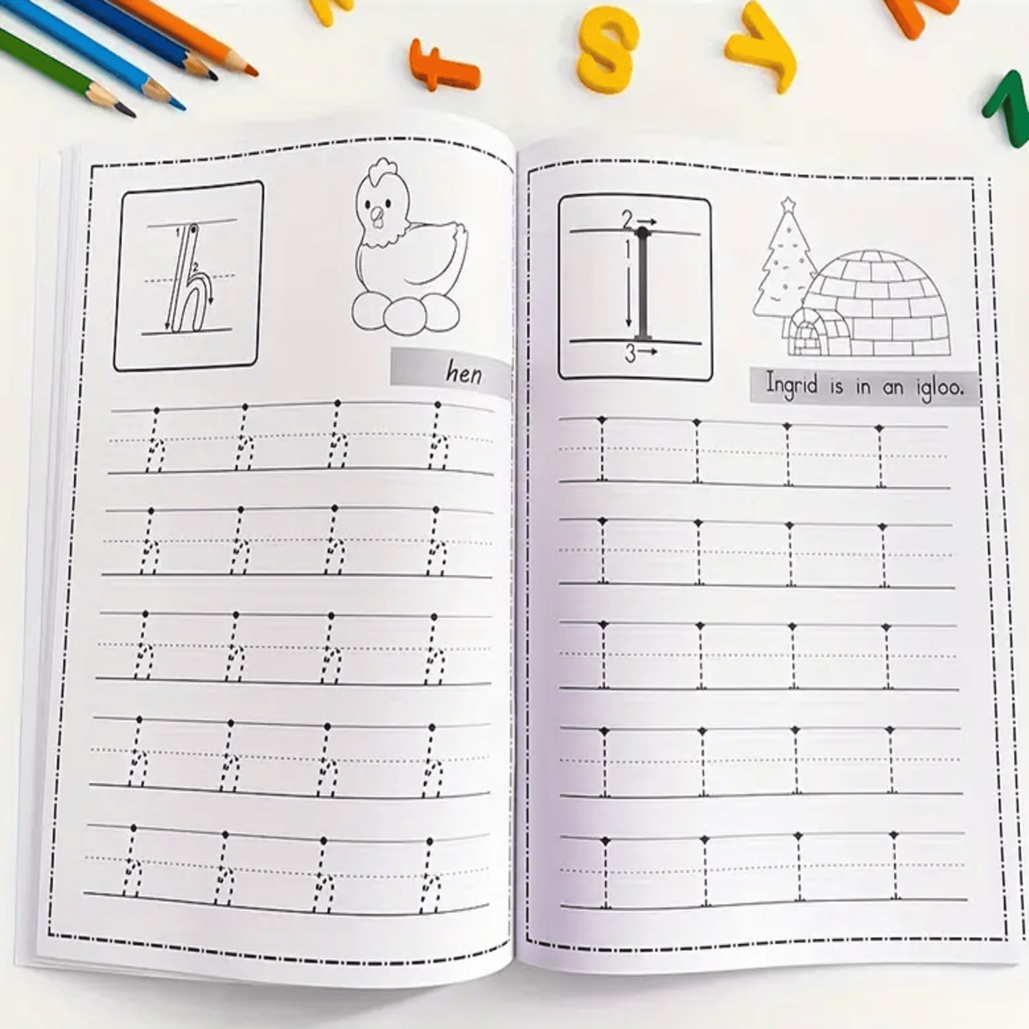 Ясни инструкции и примери водят децата как правилно да образуват всяка буква от азбуката.