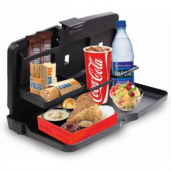 Изработена със специална повърхност, която не пропуска течности, тази маса е идеална за поставяне на напитки и храна без грижата за бъркотии. Издръжливият материал гарантира, че разлятите течности могат да бъдат изтрити лесно, като поддържат вътрешността на автомобила ви чиста и подредена.