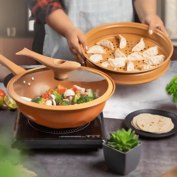 Универсалната тиган за готвене на вок и препичане - Claywok е необходимо кухненско приспособление за всеки, който обича да готви. Със способността си да готви по метода на вок, да препича месо и да сотира съставките, този тиган за вок предлага различни опции за готвене, които да подобрят Вашите готварски умения.