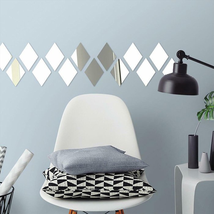 Стикерите са направени, за да ви дадат огледален ефект. Можете лесно да замените всички огледала за стикери за стена, които ще ви служат еднакво, ако не и по -добре.