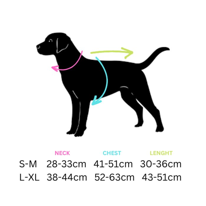 Кучешкото яке е удобно за носене и лесно за обличане и събличане благодарение на дългия цип. На гърба има качествен цип, който отваря цялото палто и не се драска лесно. Материята е лека, така че Вашето куче няма да бъде затруднено по време на разходки и движение.
