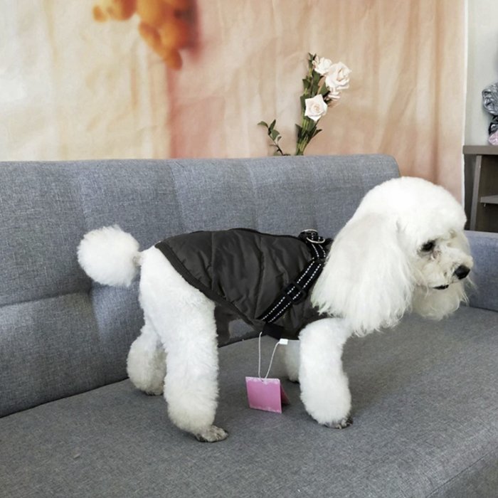 Дизайнът на нагръдника на гърба е отразяващ и регулируем, можете да го свържете с различни каишки за кучета. Не е необходимо да купувате якета и нагръдници отделно, тъй като нашето кучешко яке осигурява и двете. Въпреки добре покритата козина, кучетата няма да бъдат възпрепятствани, когато искат да се облекчат при нужда.