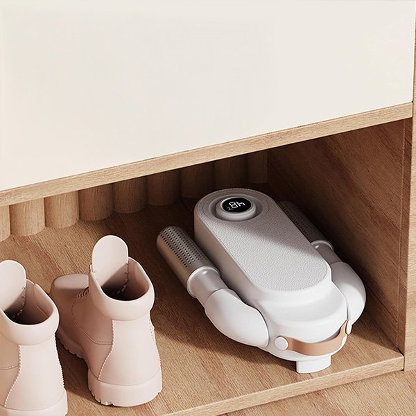Проектиран с удобство предвид, сушилнята разполага с компактен дизайн, който се вмества лесно във всяко пространство за съхранение. Идеален за малки апартаменти или пътувания, той ви позволява да поддържате обувките си сухи навсякъде, където отидете.