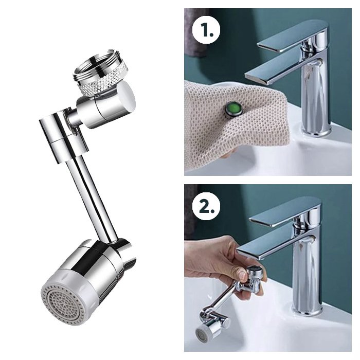 Нашият въртящ се на 1080° и сгъваем удължител за кран със спрей е подходящ за използване в кухненската мивка, тъй като служи за по-гъвкаво измиване на зеленчуци, плодове, съдове или ръце и може да достигне до всички ъгли на мивката, докато повечето други кранове не могат. Много е полезно за децата, тъй като някои трудно достигат до крана, за да си измият ръцете или лицето. За използване в мивката в банята можете да миете косата и лицето си по-лесно. В същото време удължителят на смесителя с голям ъгъл на завъртане е по-удобен за почистване на цялата мивка.