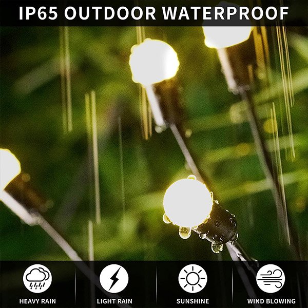 Светлините Firefly са изработени от първокласни материали и са проектирани да издържат на различни атмосферни условия, което им позволява да се използват през цялата година. Издръжливата им конструкция гарантира, че могат да издържат на дъжд, вятър и сняг, което ги прави идеални за използване на открито през всеки сезон.