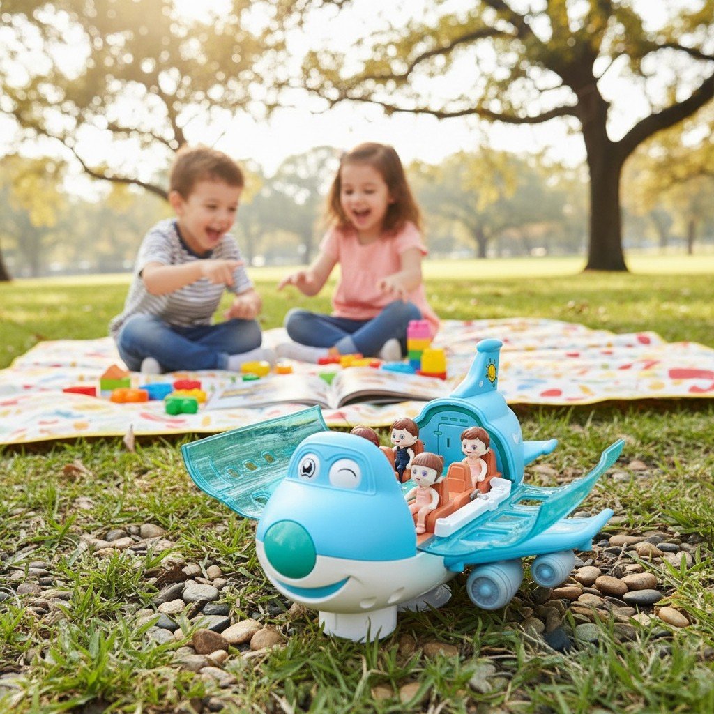 Създаден, за да вдъхновява движение и изследване, този играчечен самолет поощрява активната игра. Децата могат да го пускат по пода или да го вземат на въображаеми полети, насърчавайки физическа активност и координация.