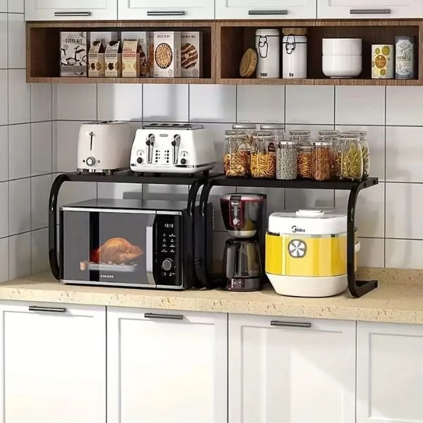 Нашата микровълнова стойка е проектирана да оптимизира ефективно вашето кухненско пространство. С компактния си дизайн тя се побира идеално в малки пространства, осигурявайки допълнително съхранение, без да заема много място. Това гарантира безболезнено, организирано кухненско пространство, което ви позволява да извлечете най-доброто от вашата кухня.