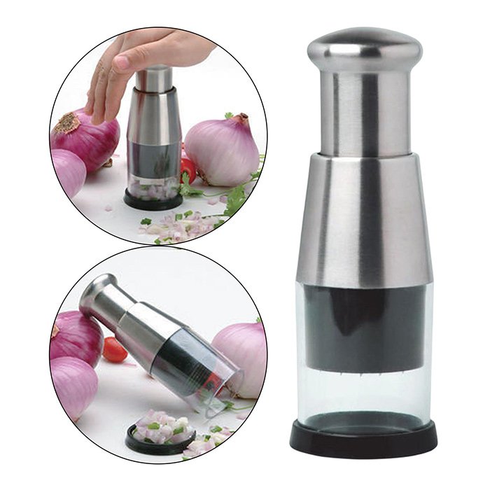 Резачката за лук е безопасно проектирана да държи ръцете ви далеч от острието. Вече не се нуждаете от умения с нож, за да режете зеленчуци, всичко, което трябва да направите, е да натиснете дръжката. В допълнение, отличната конструкция ви позволява да избегнете възможността да се порежете с обикновени кухненски ножове.