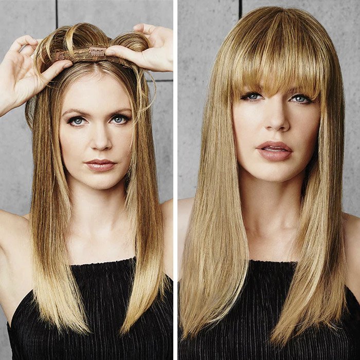 Шнолата за коса във формата на бретон е изработена от термоустойчиви синтетични влакна за коса. Те са ръчно зашити и меки на допир, придаващи естествен блясък и реалистичен ефект като на собствената Ви коса. Шнолата е с лесно и здраво поставяне, така че можете да сменяте прическата си всеки ден, без да подстригвате косата си.