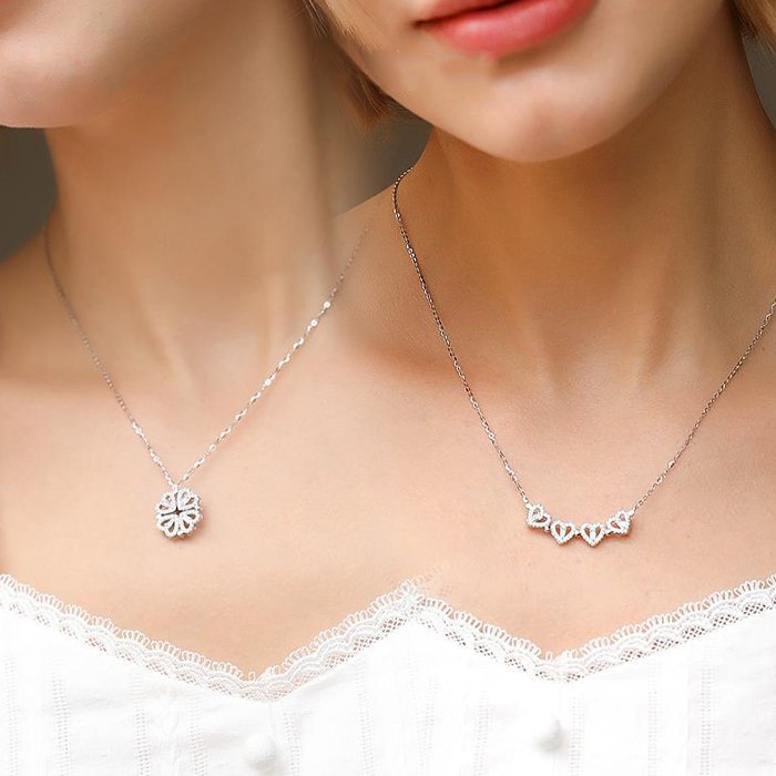 Колието е изработено без опасни вещества като никел, олово и други. Изработено от материали, които са щадящи кожата Ви и са удобни за носене. Hearty има специален магнитен дизайн, който променя формата на колието от детелина с четири листа до набор от сърца.
