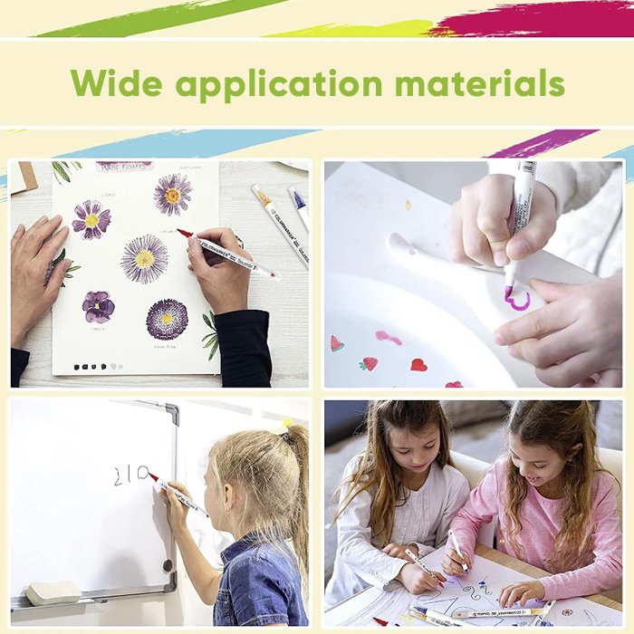 Писалката съхне бързо и пише гладко, без изтичане на мастило. Мастилото на водна основа се изтрива лесно с кърпа и не оставя следи. Съдържа сертифицирано нетоксично мастило и специална формула със слаба миризма и е безвредна за човешкото тяло.