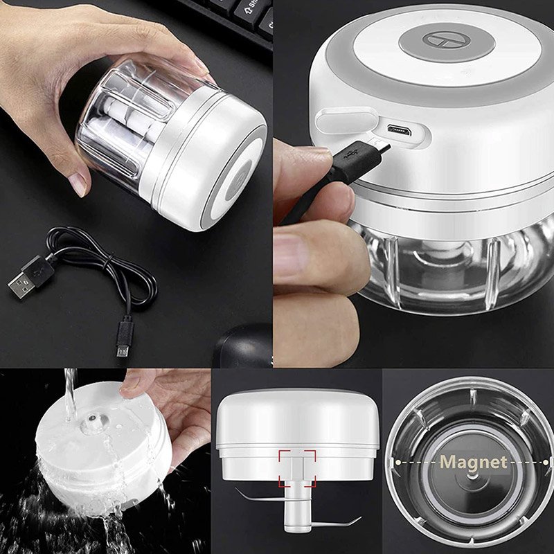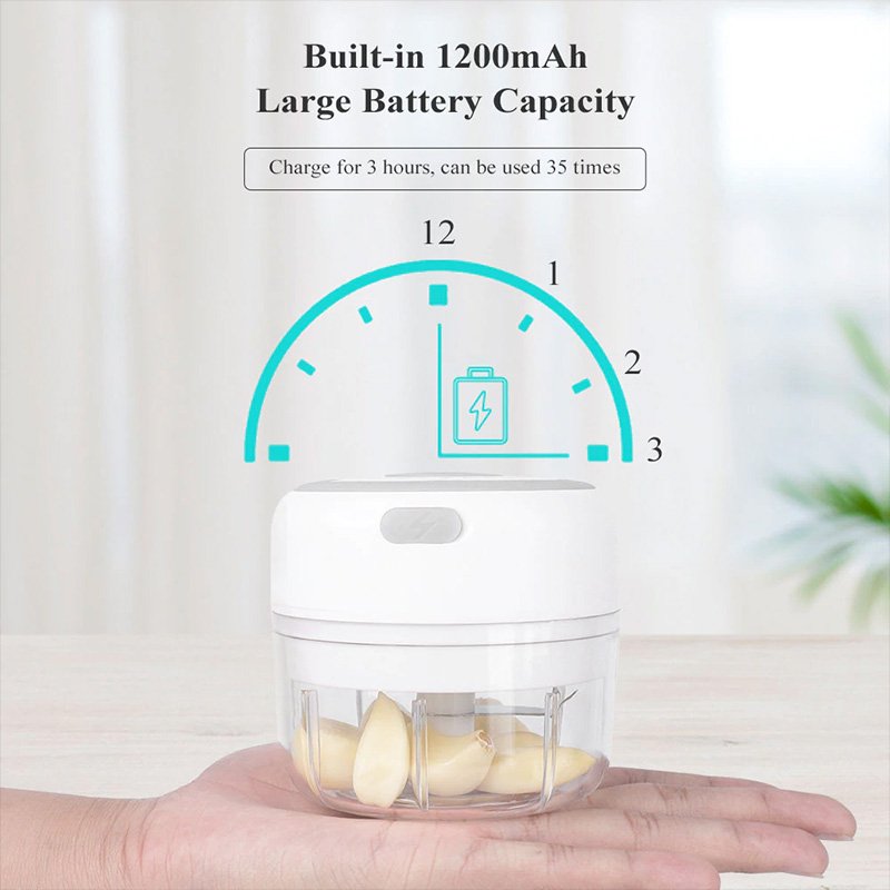 Този безжичен кухненски инструмент се захранва от акумулаторна батерия и включва USB кабел за зареждане. Използвайте чопъра по всяко време и навсякъде, където имате нужда!
