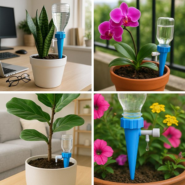 Всяка система за капене се побира в повечето обичайни гърла на бутилките за сигурно, устойчиво на течове уплътнение, което прави смяната на бутилките и пълненето бързо и лесно. Универсалната съвместимост ви позволява да използвате рециклирани или многократно използвани бутилки, скалирайки хидратацията по балконите, прозорче, и смесени контейнерни градини без специални части.