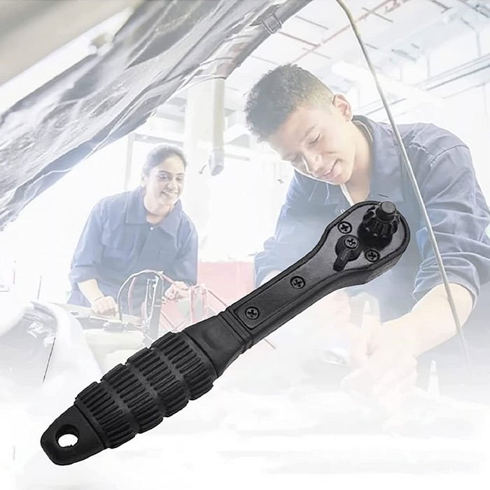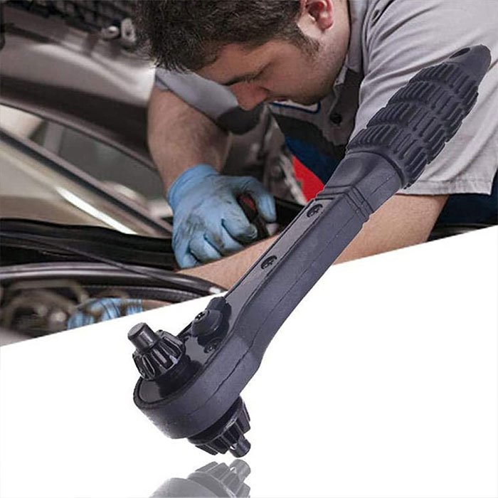 Ключът 2 в 1 има по един размер от всяка страна. Малката глава от едната страна е прибл. 12,7 мм, а от другата страна размерът на главата е прибл. 17,5 мм, което прави тресчотката подходяща за всички видове бормашини и електрически инструменти.