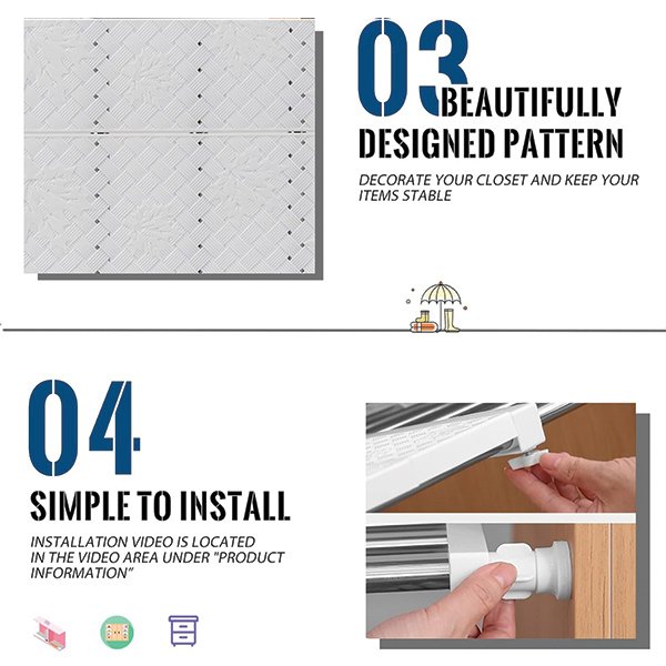 Кажете сбогом на претрупаните гардероби с издръжлива и здрава конструкция на Shelfy. Той издържа до 20 паунда тегло, запазвайки вашите принадлежности организирани и лесно достъпни.