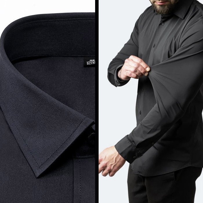 Материята е удобна и дишаща. Той е проектиран да отвежда влагата от тялото, така че да се усеща свеж и прохладен. Гладенето на плата не е необходимо, тъй като мъжките ризи без гънки са изработени от по-мека и лека материя, което допълнително намалява намачкването.