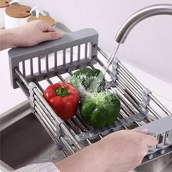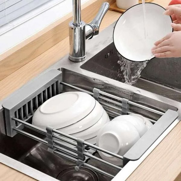 Разтегателната функция на нашия стилаж за съхнещи съдове позволява безпроблемно настройване и съхранение, което го прави практично и ефективно допълнение към всяка кухня.