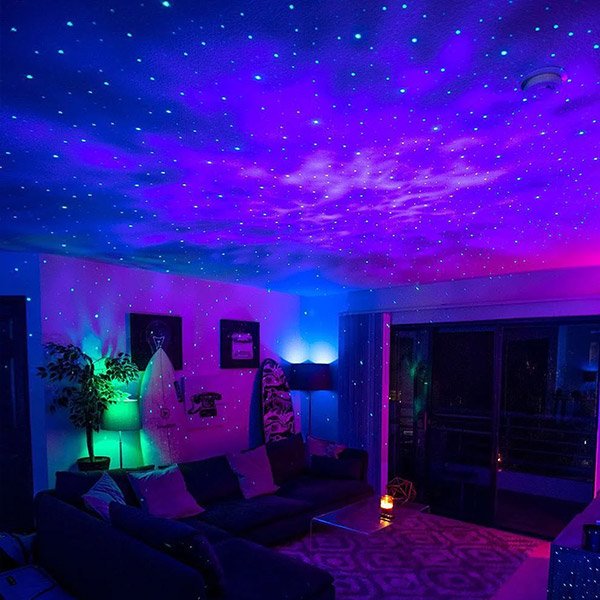 Звездният проектор може да проектира до 21 различни цвята. За да получите толкова много комбинации, 5 стандартни цвята (червено, синьо, зелено, бяло и зелена лазерна точка) се смесват един с друг. Различни цветове, комбинирани с динамична нощна прожекция с различни скорости, създават спокойна, романтична и цветна и забавна атмосфера в стая с красива звездна светлина.
