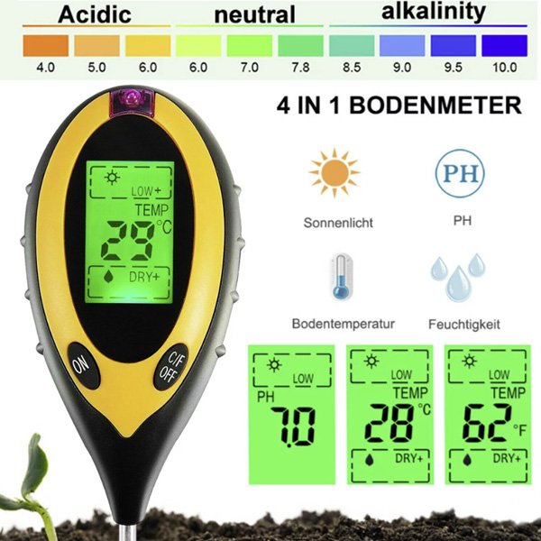 Това цялостно устройство осигурява точни и незабавни показания на четири основни фактора на растежа на растенията, което го прави основен инструмент за градинарски ентусиасти, фермери и всеки, който иска да осигури здравето на своите растения.