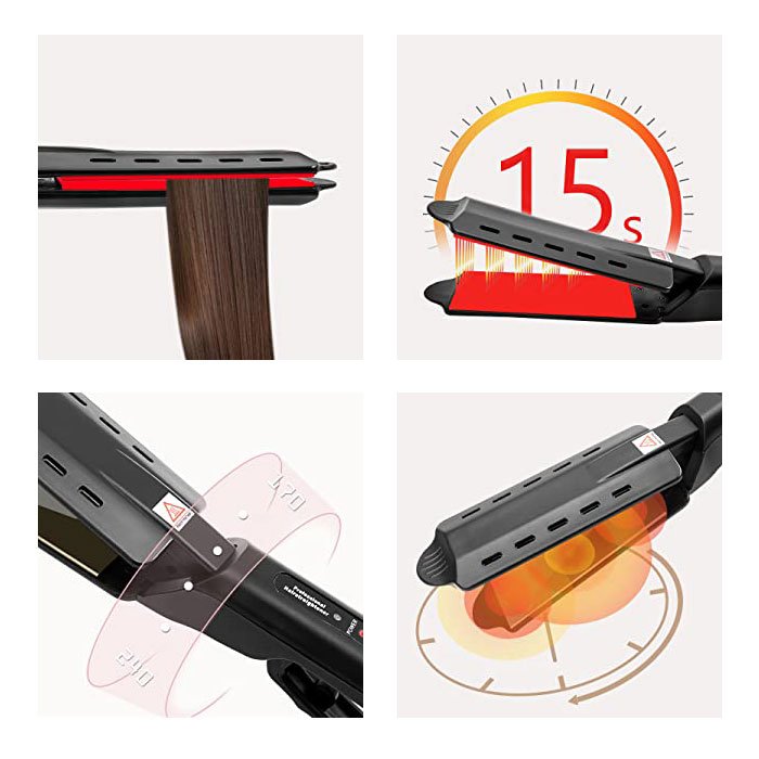Изживейте удобството на стилизиране докато сте на път с бързото 30-секундно загряване на нашия преса за коса. Перфектен за заетите сутрини, тази функция гарантира, че можете да постигнете гладка, права коса без чакане. Подгответе се по-бързо и се насладете на повече време за показване на вашия фабулен коса.