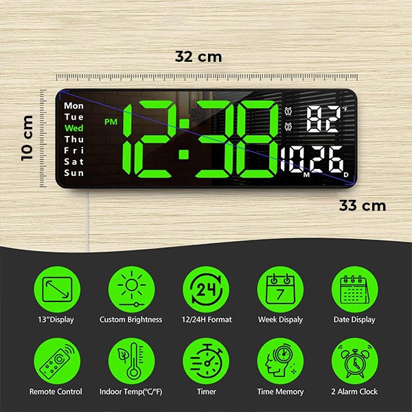 Нашия цифров стенен часовник не само показва времето, но също така включва и допълнителни функции като дата, температура и настройки за будилник, което я прави универсален и практичен аксесоар за всяка домакиня.