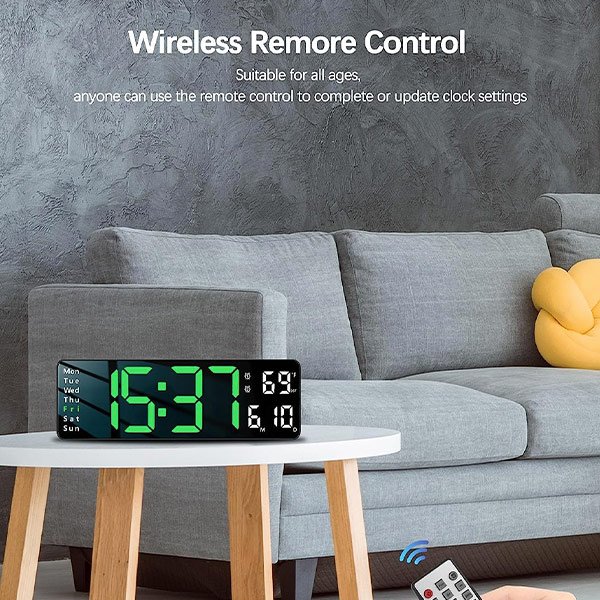 С помощта на своя голям и ярък LED дисплей, нашия цифров стенен часовник осигурява лесна видимост на времето от всяка страна на стаята, премахвайки нуждата от присвиване или напрягане.